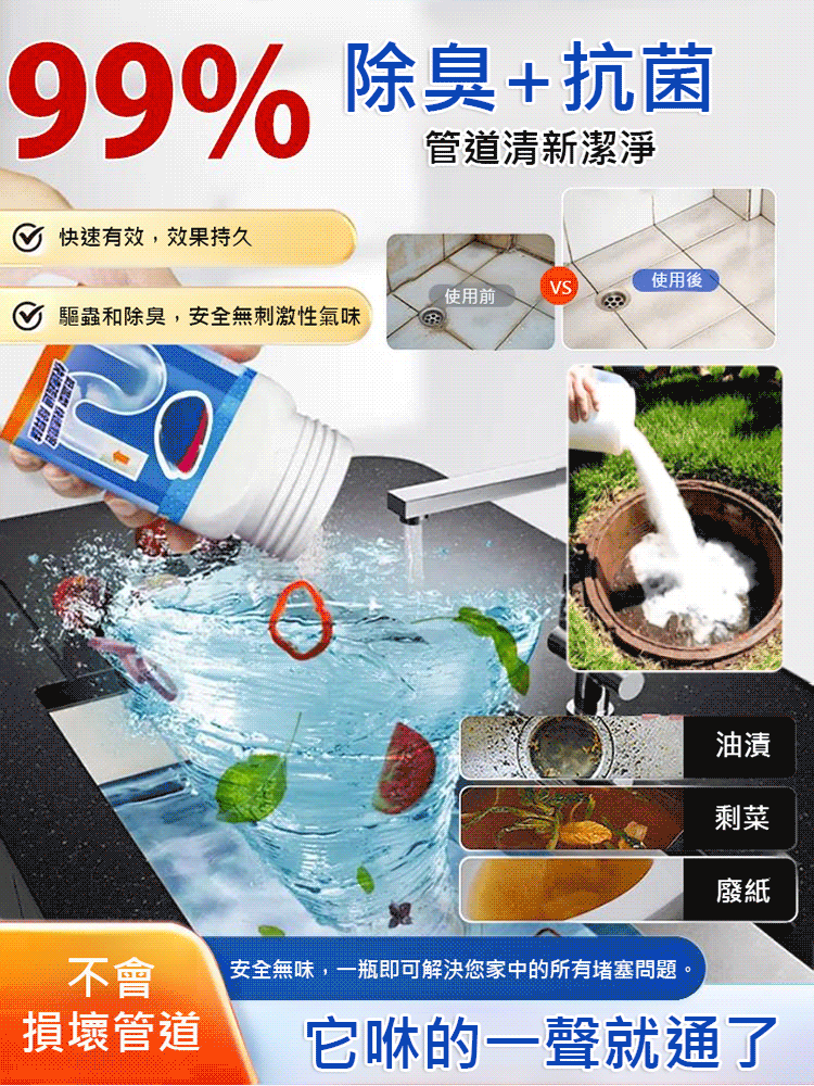 【99.9%強力疏通】管道強力溶解劑