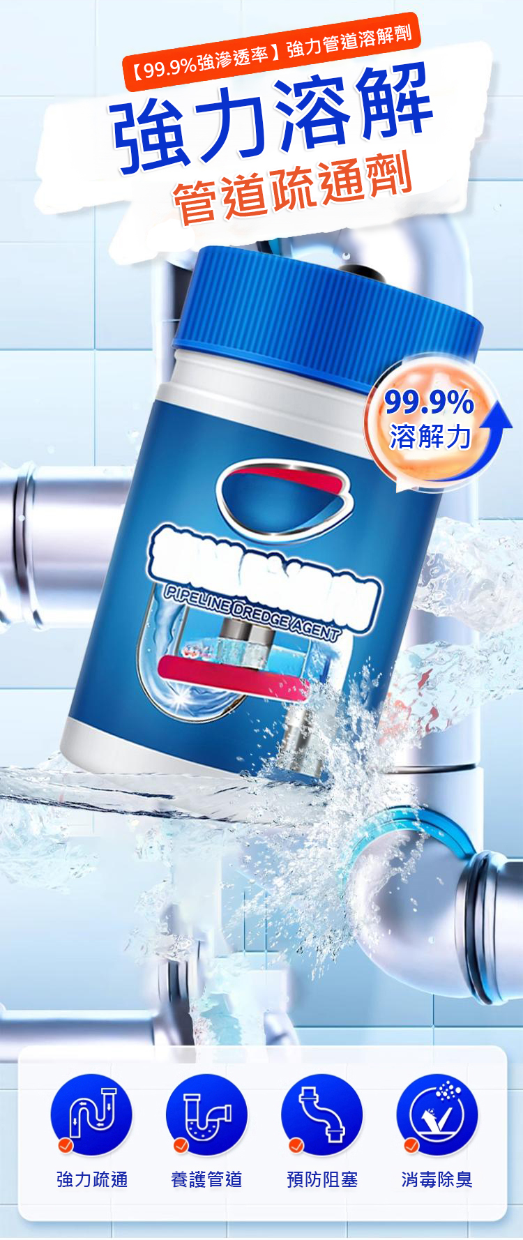 【99.9%強力疏通】管道強力溶解劑